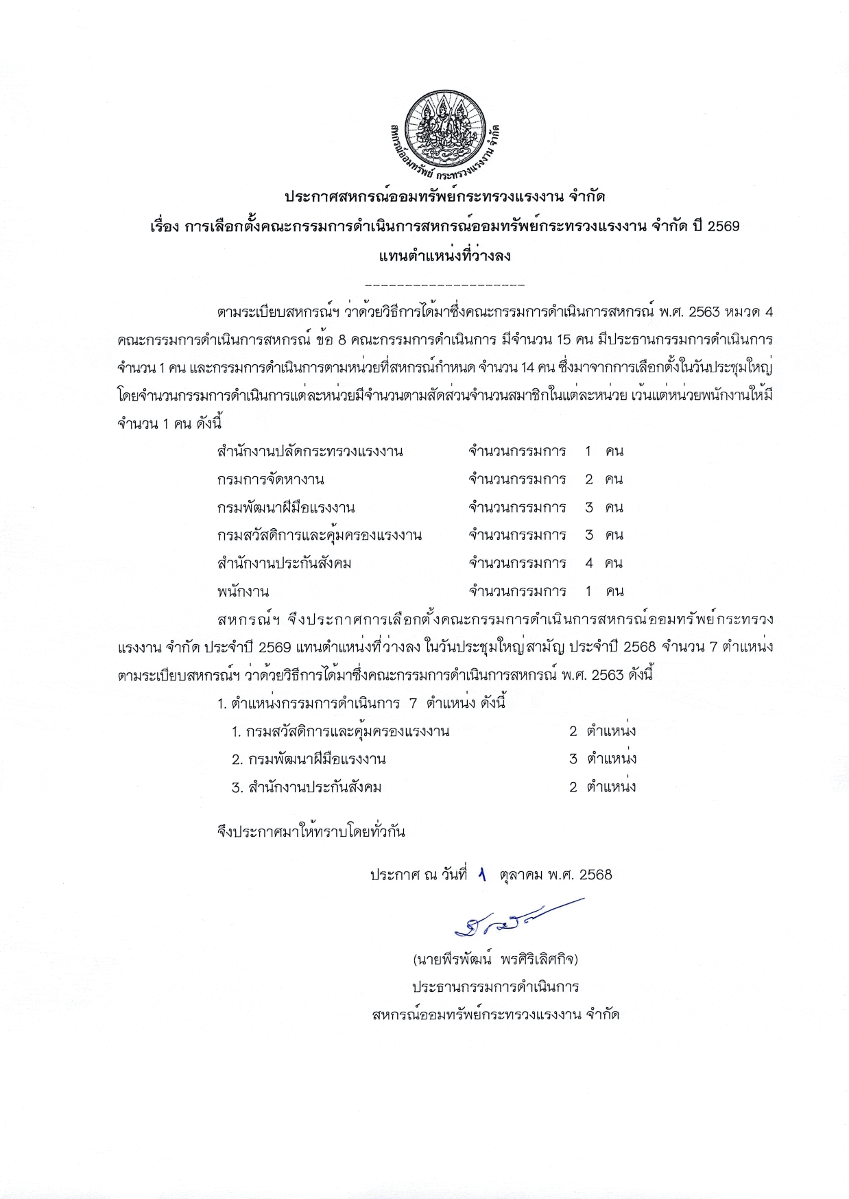 การเลือกตั้งคณะกรรมการดำเนินการสหกรณ์ แทนตำแหน่งที่ว่าง ประจำปี 2569