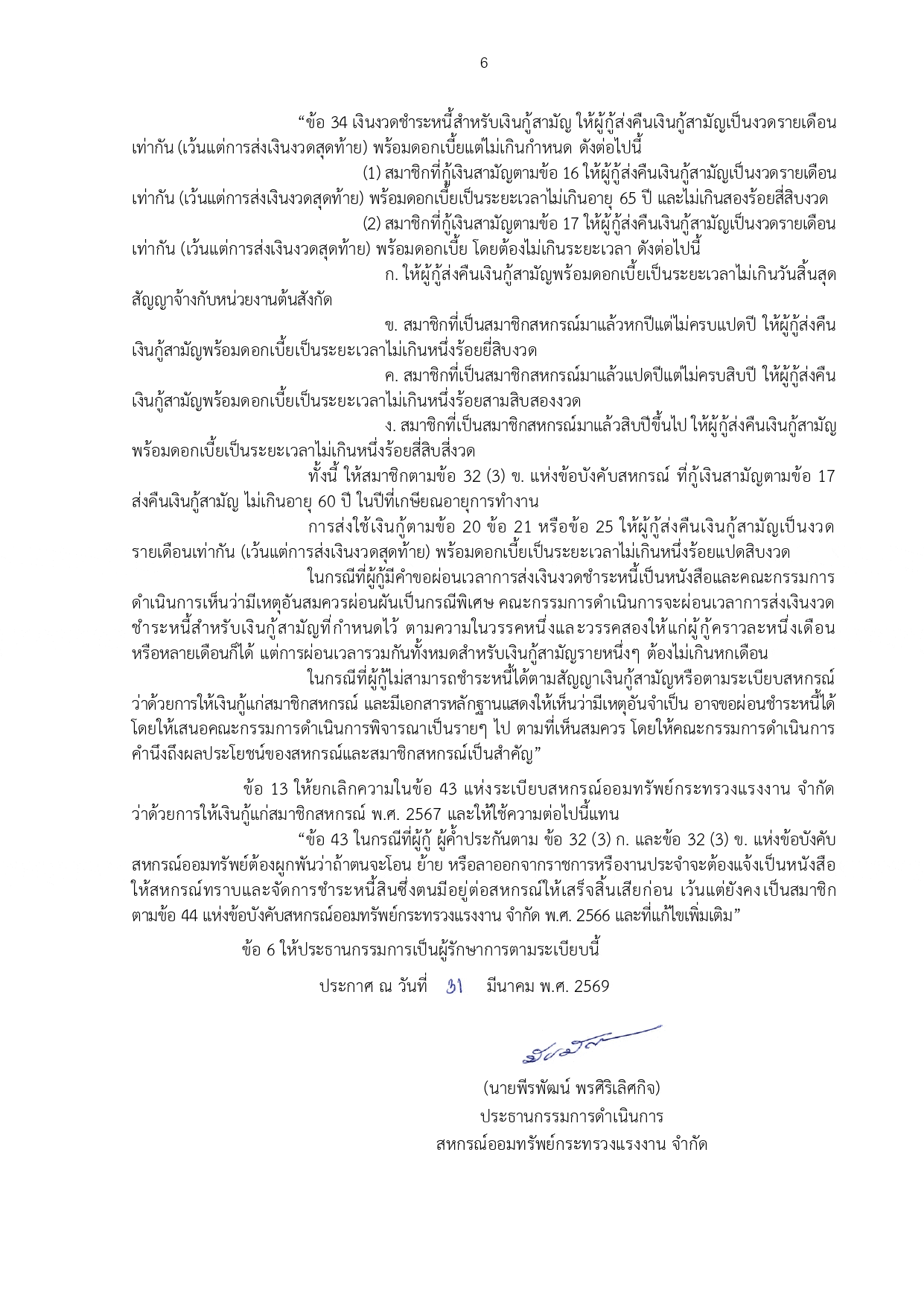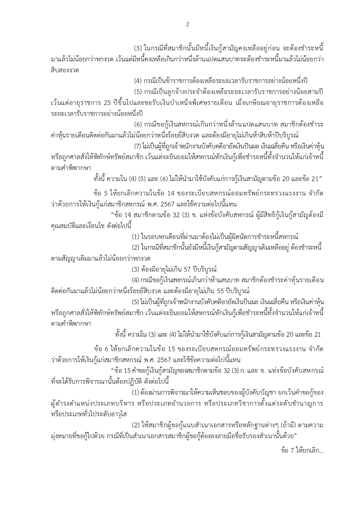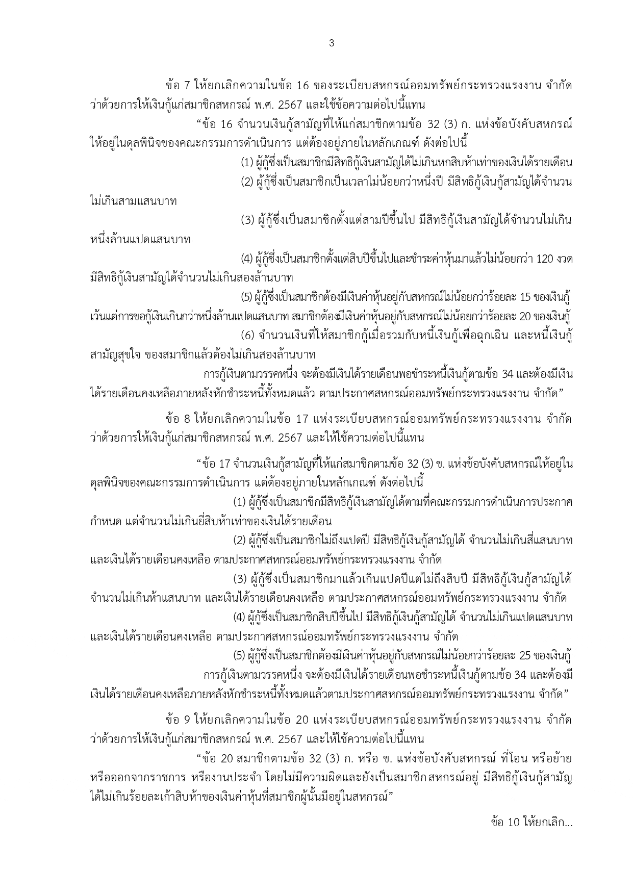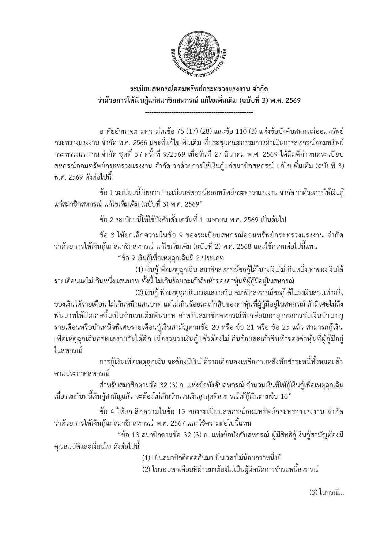 ระเบียบสหกรณ์ฯ ว่าด้วย ให้เงินกู้แก่สมาชิก แก้ไขเพิ่มเติม (ฉบับที่ 3) พ.ศ.2569