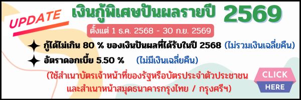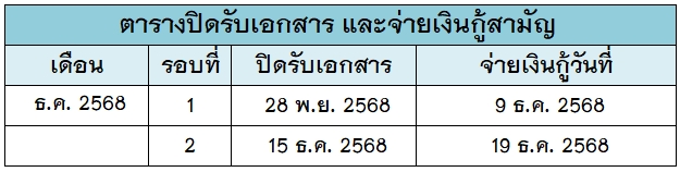 - ส่งคืนเงินกู้ภายในระยะเวลา 20 งวด นัับตั้งแต่วันที่กู้ครั้งสุดท้าย (ไม่ต้องต่อสัญญา)
