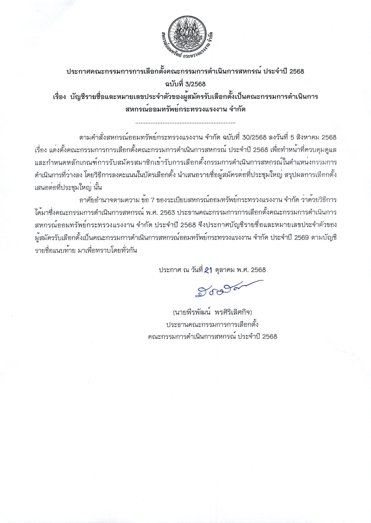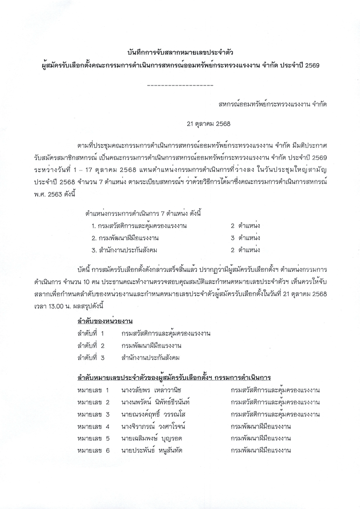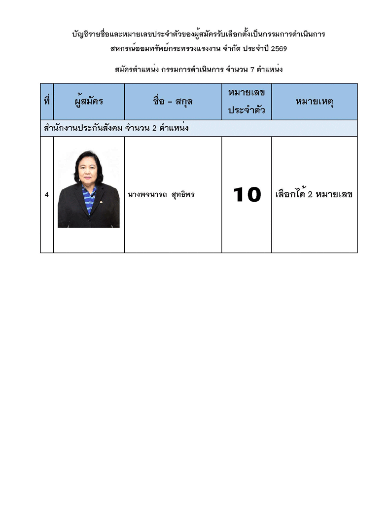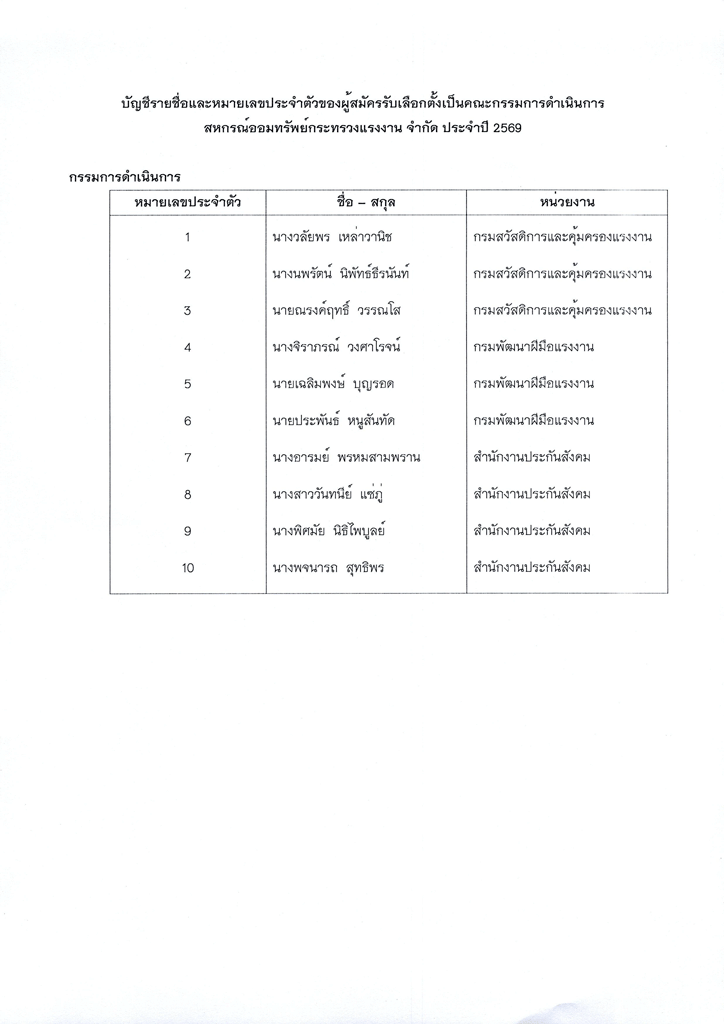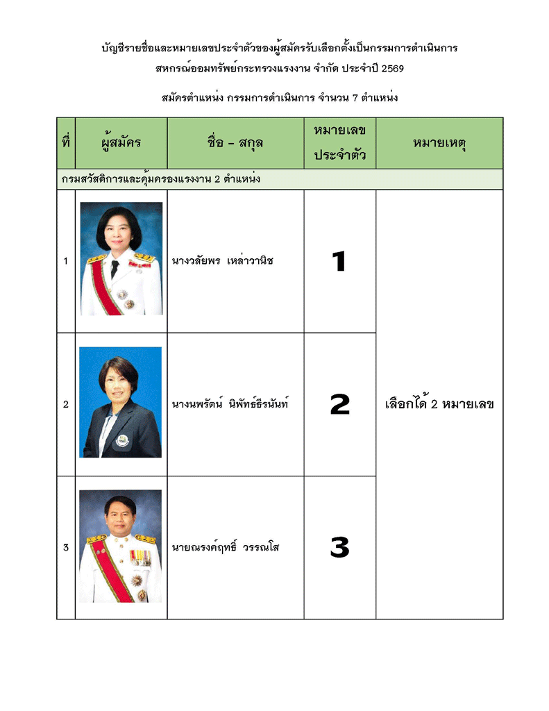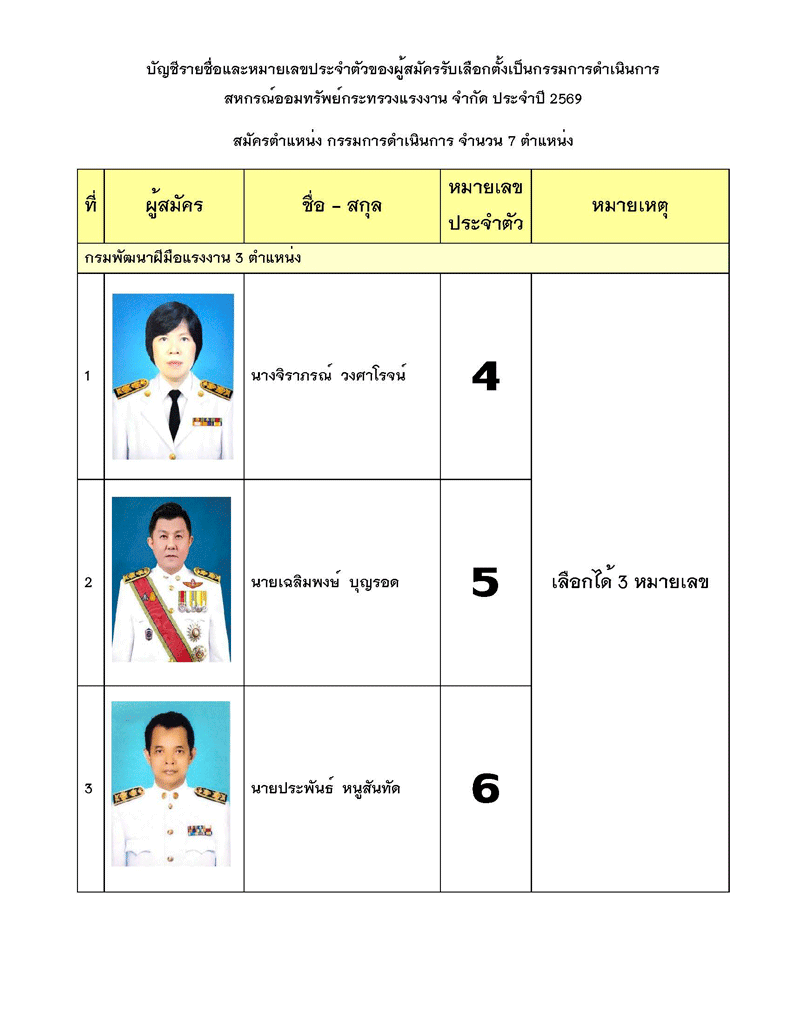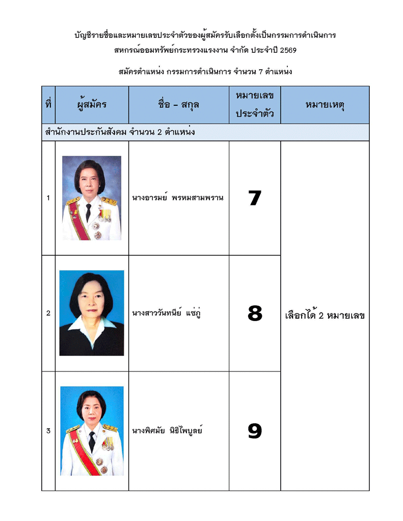 บัญชีรายชื่อและหมายเลขประจำตัวผู้สมัครรับเลือกตั้งเป็นคณะกรรมการฯ