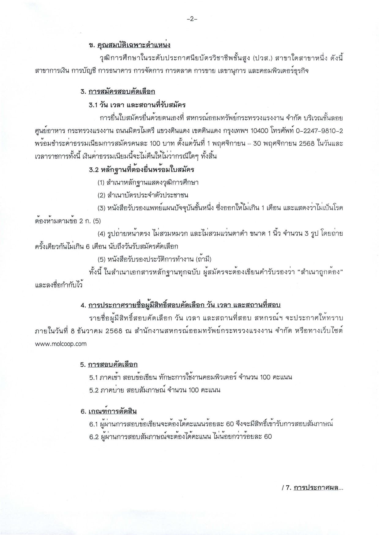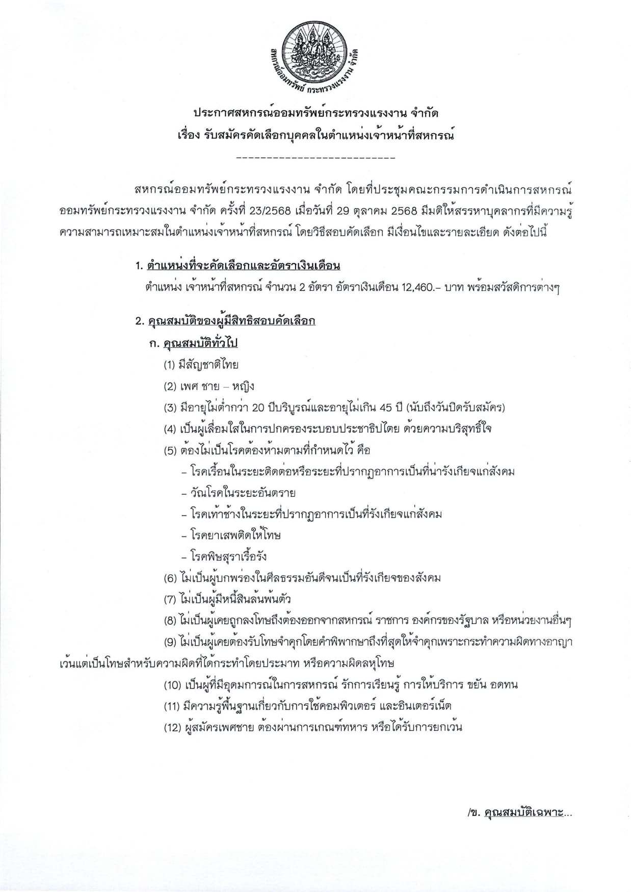 รับสมัครคัดเลือกบุคคลในตำแหน่งเจ้าหน้าที่สหกรณ์
