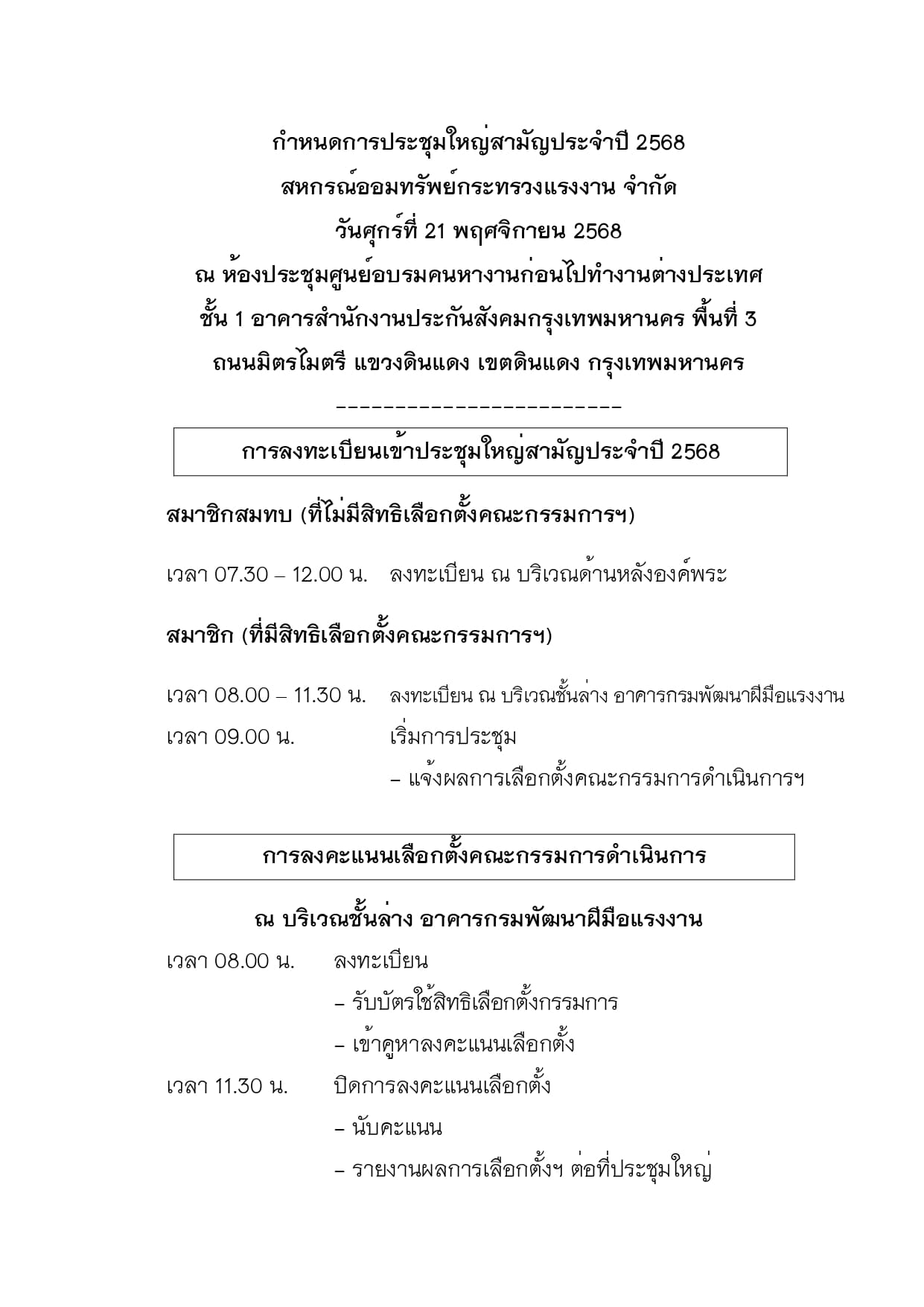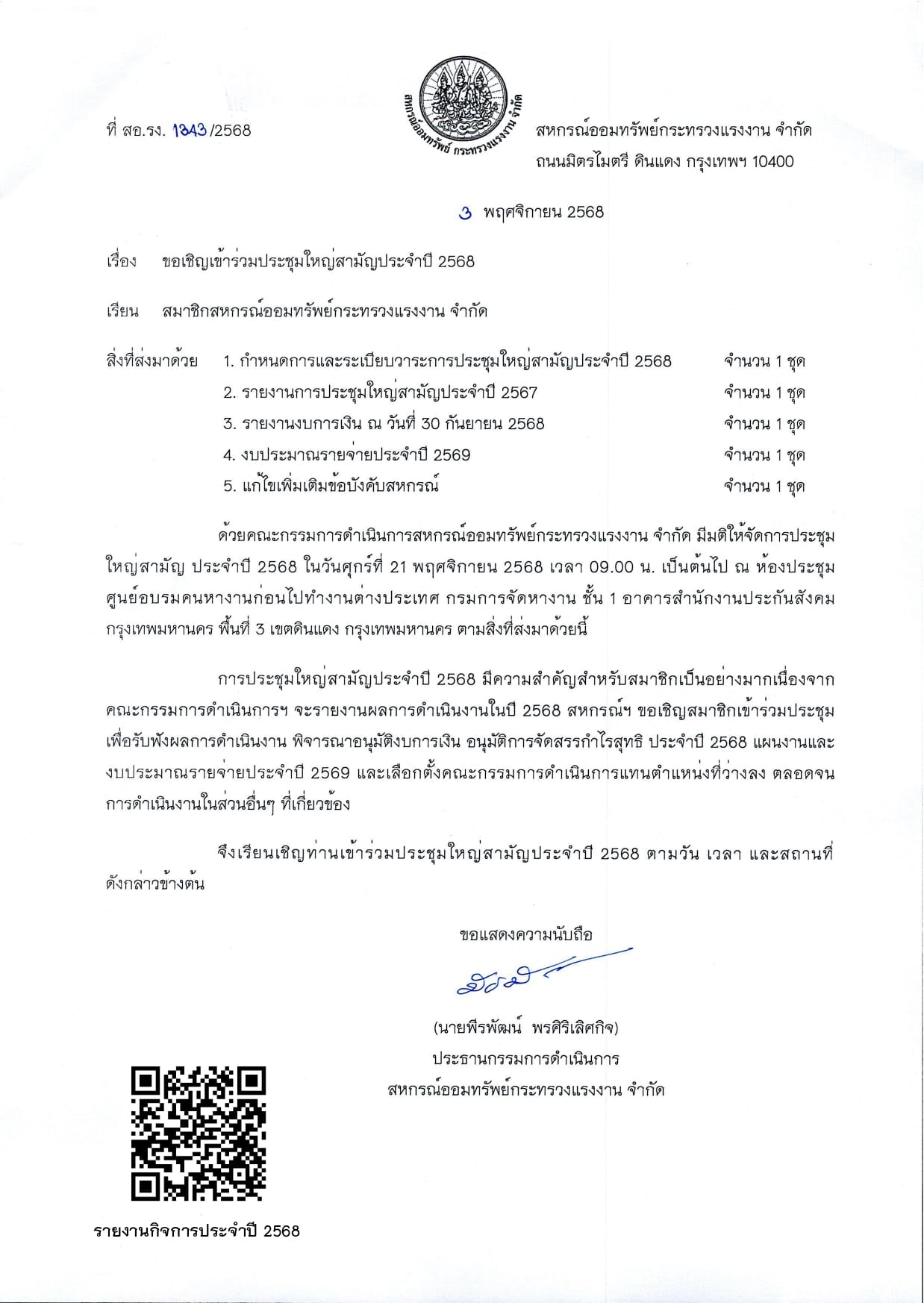 ขอเชิญเข้าร่วมประชุมใหญ่สามัญประจำปี 2568