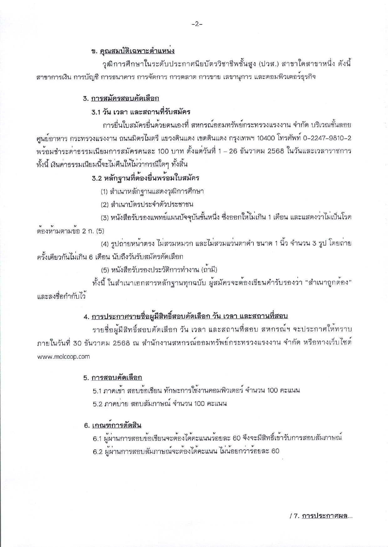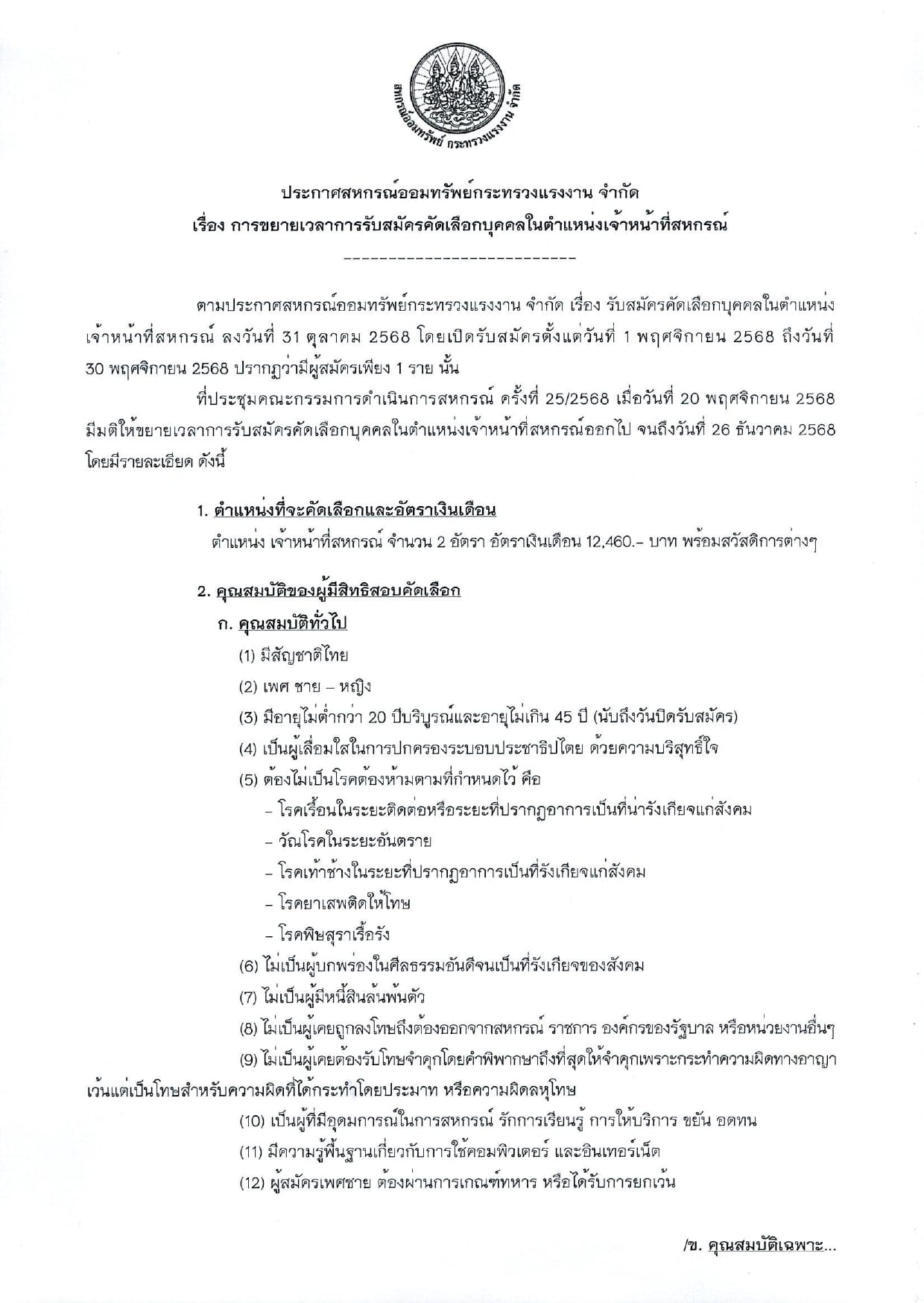 การขยายเวลาการรับสมัครคัดเลือกบุคคลในตำแหน่งเจ้าหน้าที่สหกรณ์