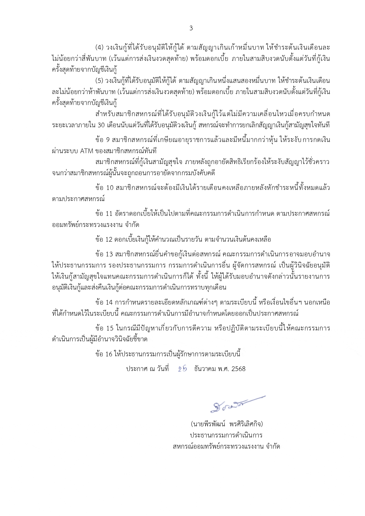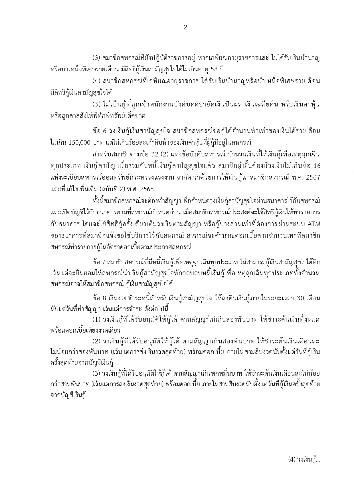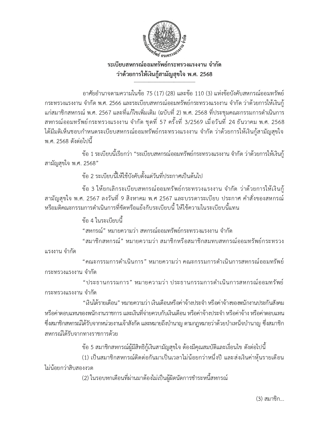 ระเบียบสหกรณ์ฯ ว่าด้วยการให้เงินกู้สามัญสุขใจ พ.ศ. 2568