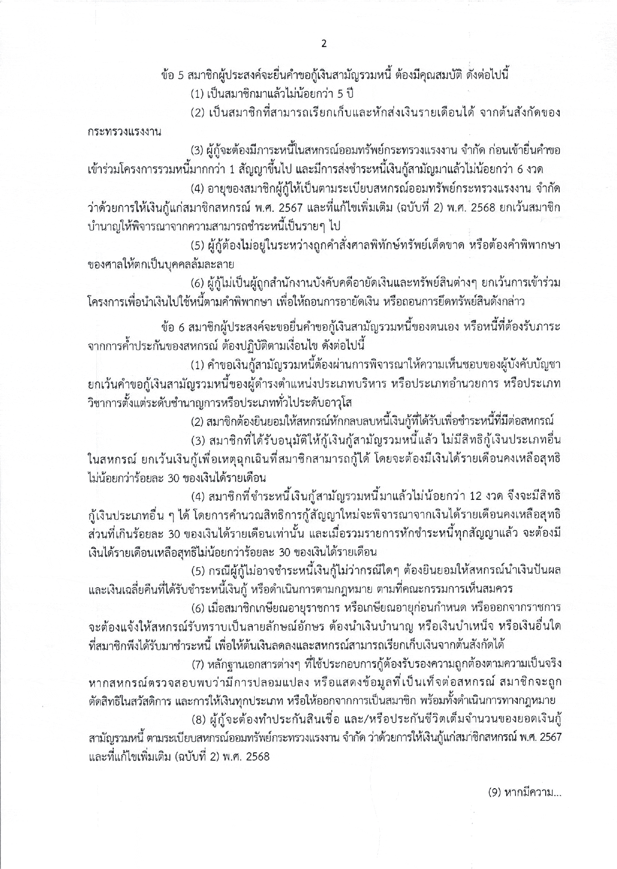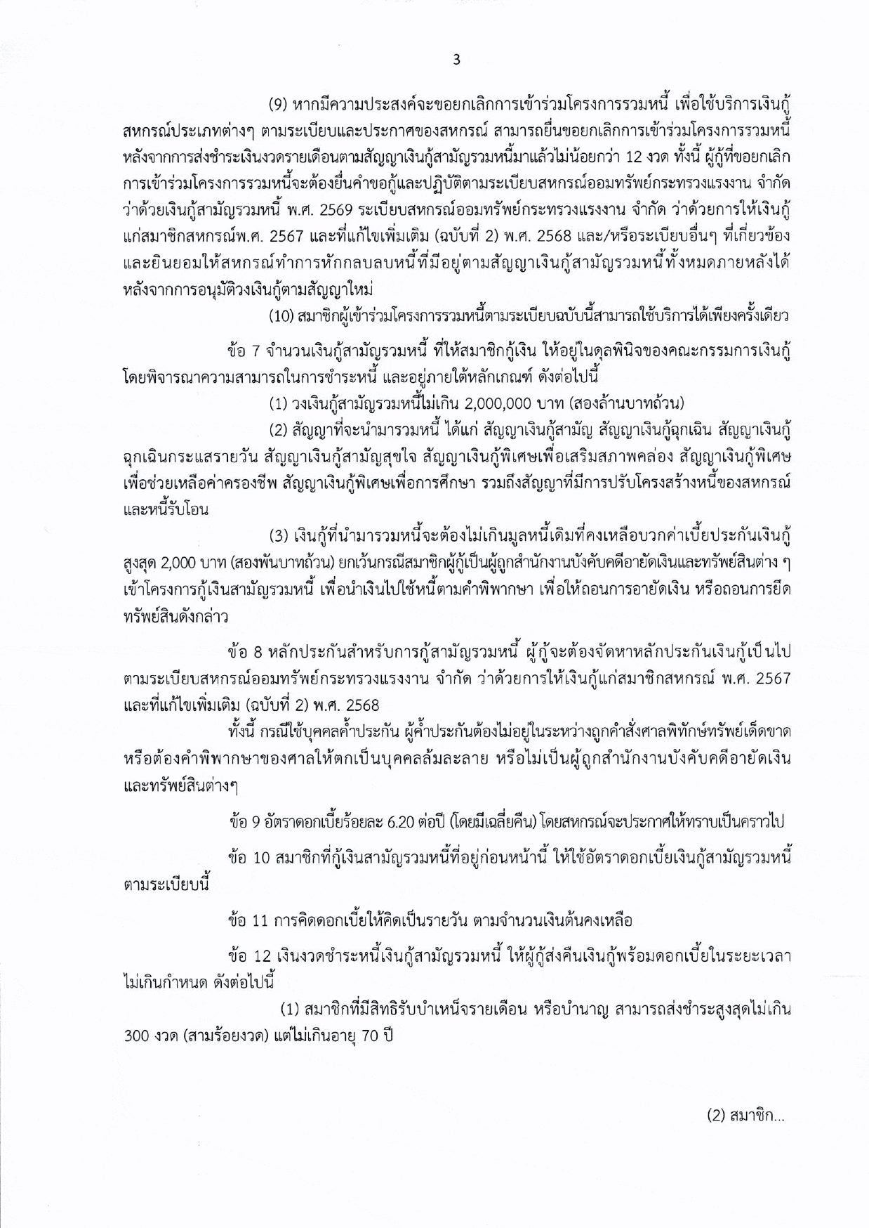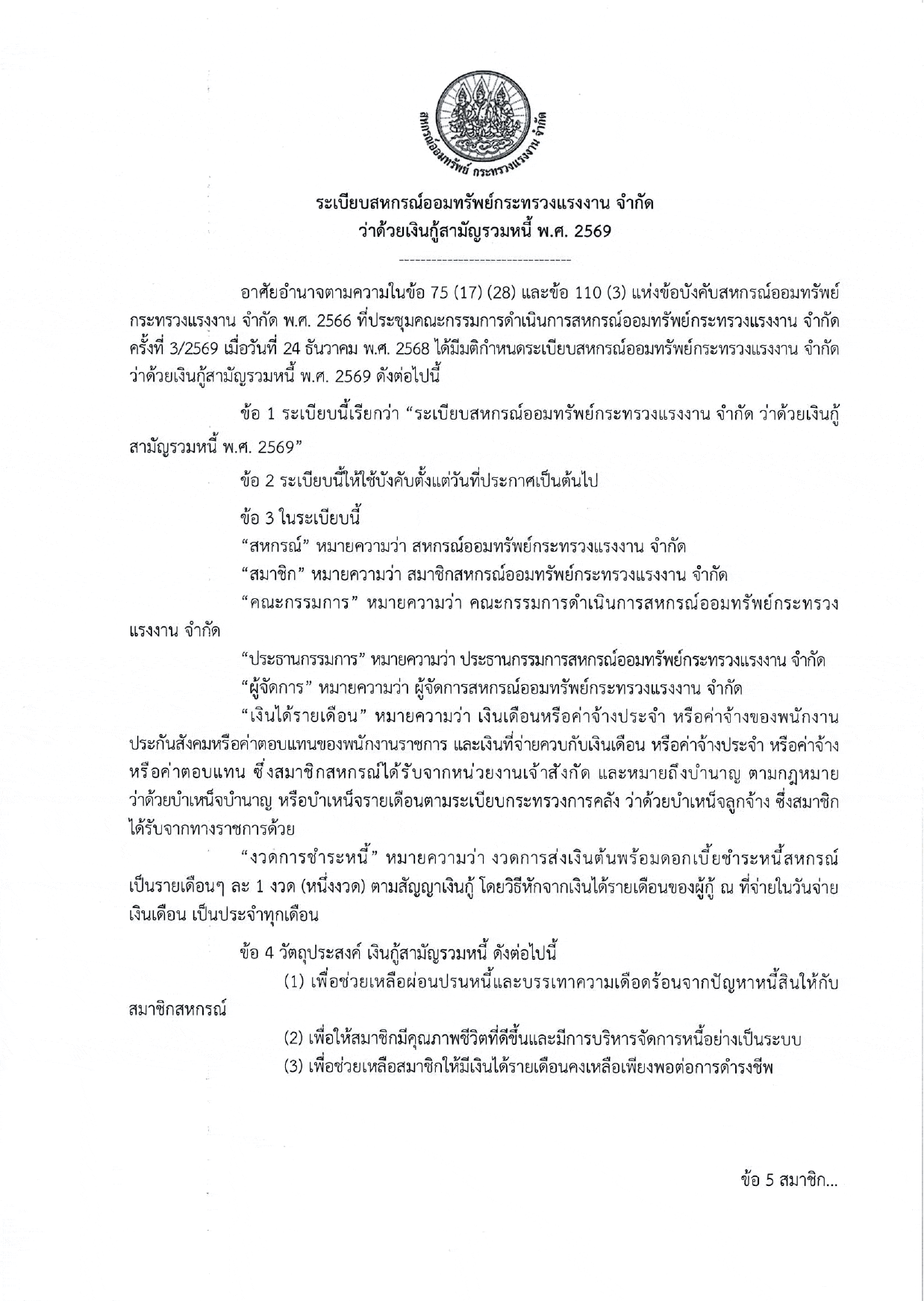ระเบียบสหกรณ์ฯ ว่าด้วย เงินกู้สามัญรวมหนี้ พ.ศ.2569