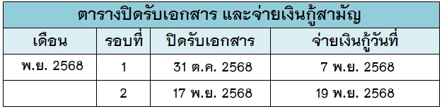 - ส่งคืนเงินกู้ภายในระยะเวลา 20 งวด นัับตั้งแต่วันที่กู้ครั้งสุดท้าย (ไม่ต้องต่อสัญญา)