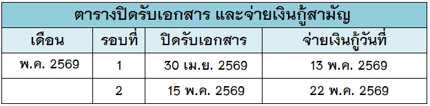 - ส่งคืนเงินกู้ภายในระยะเวลา 30 งวด นัับตั้งแต่วันที่กู้ครั้งสุดท้าย (ไม่ต้องต่อสัญญา)