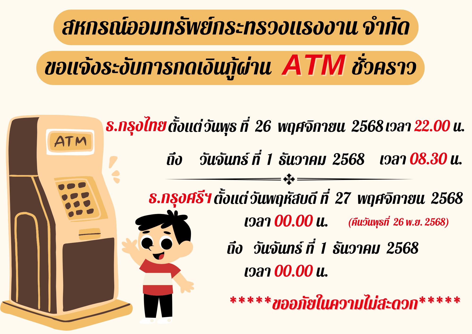 - สมาชิกต้องมีบัตร ATM และกดกู้เงินกับตู้ ATM