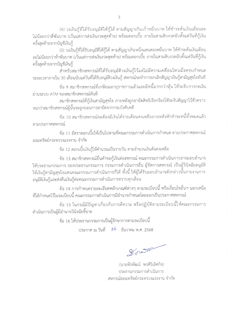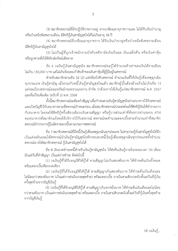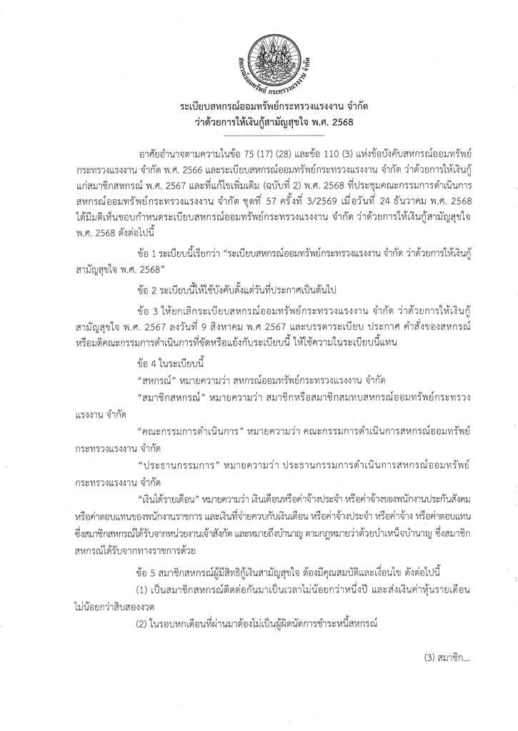 ระเบียบสหกรณ์ฯ ว่าด้วยการให้เงินกู้สามัญสุขใจ พ.ศ. 2568