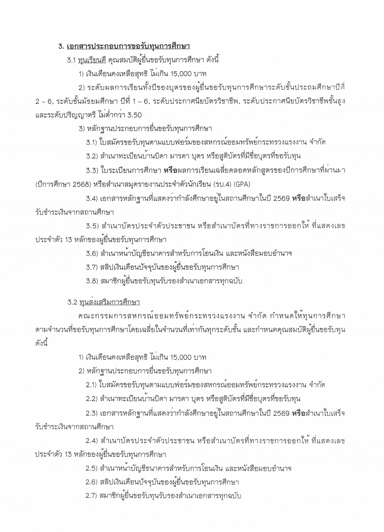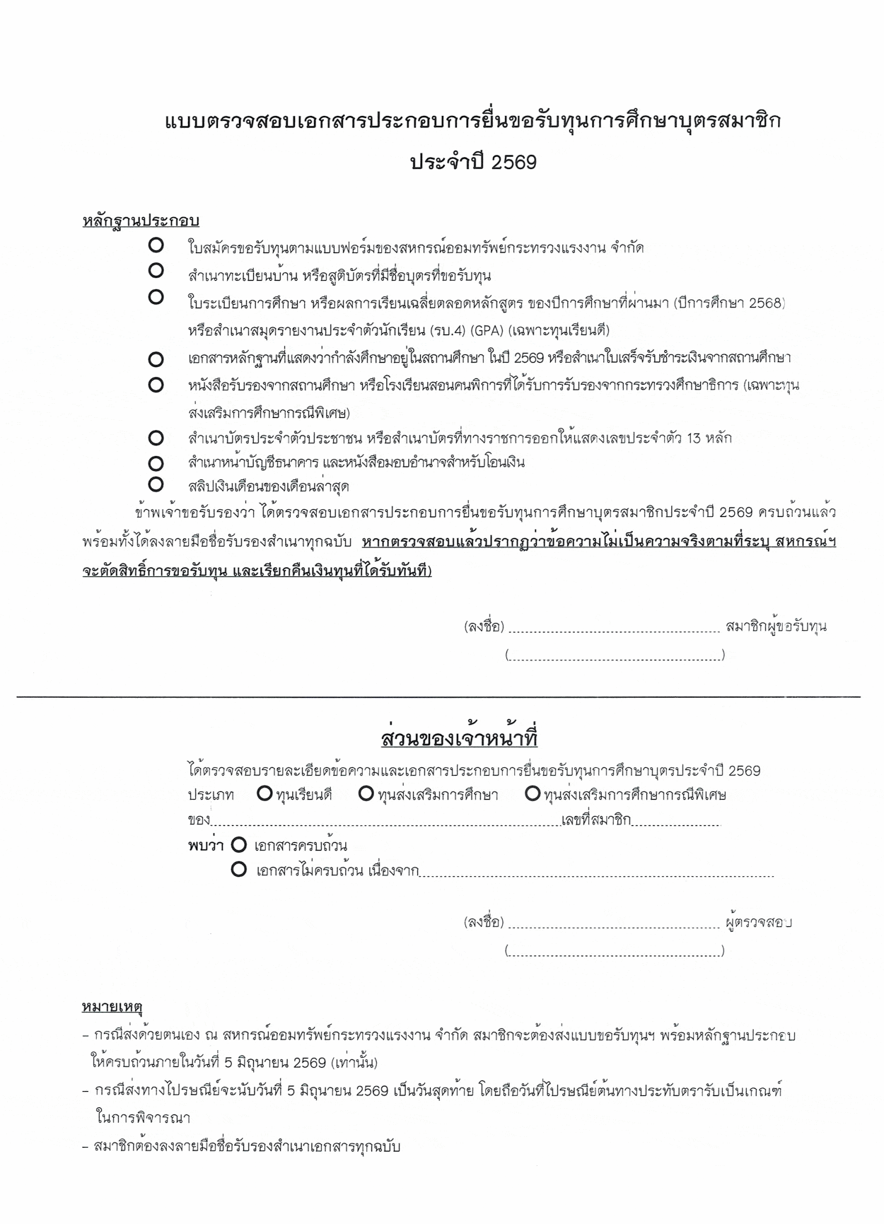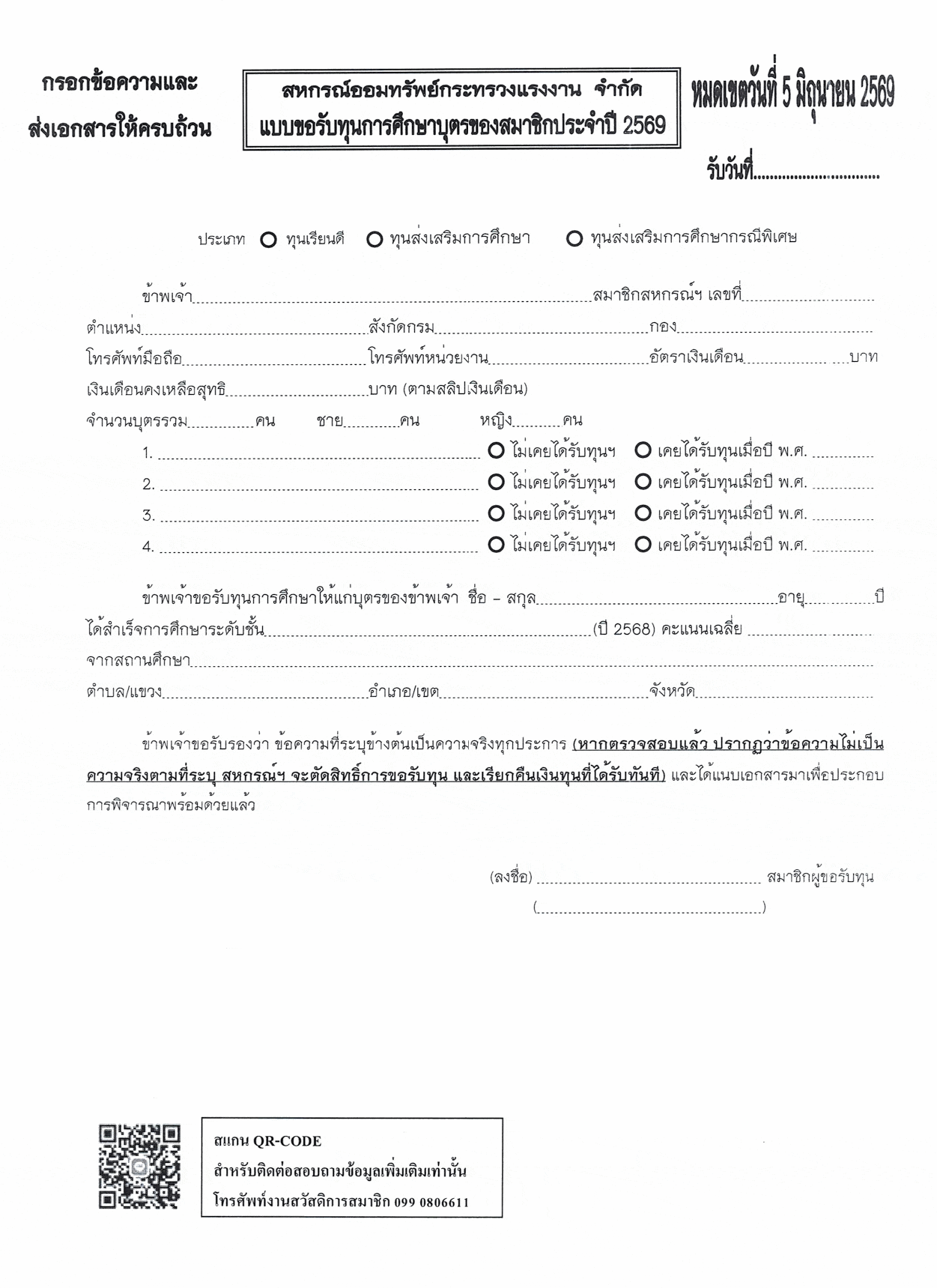การให้ทุนการศึกษาบุตรสมาชิก ประจำปีการศึกษา 2569