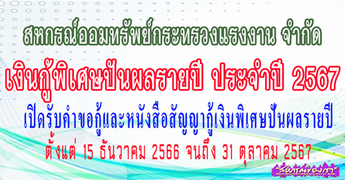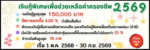 - ส่งคืนเงินกู้ภายในระยะเวลา 20 งวด นัับตั้งแต่วันที่กู้ครั้งสุดท้าย (ไม่ต้องต่อสัญญา)