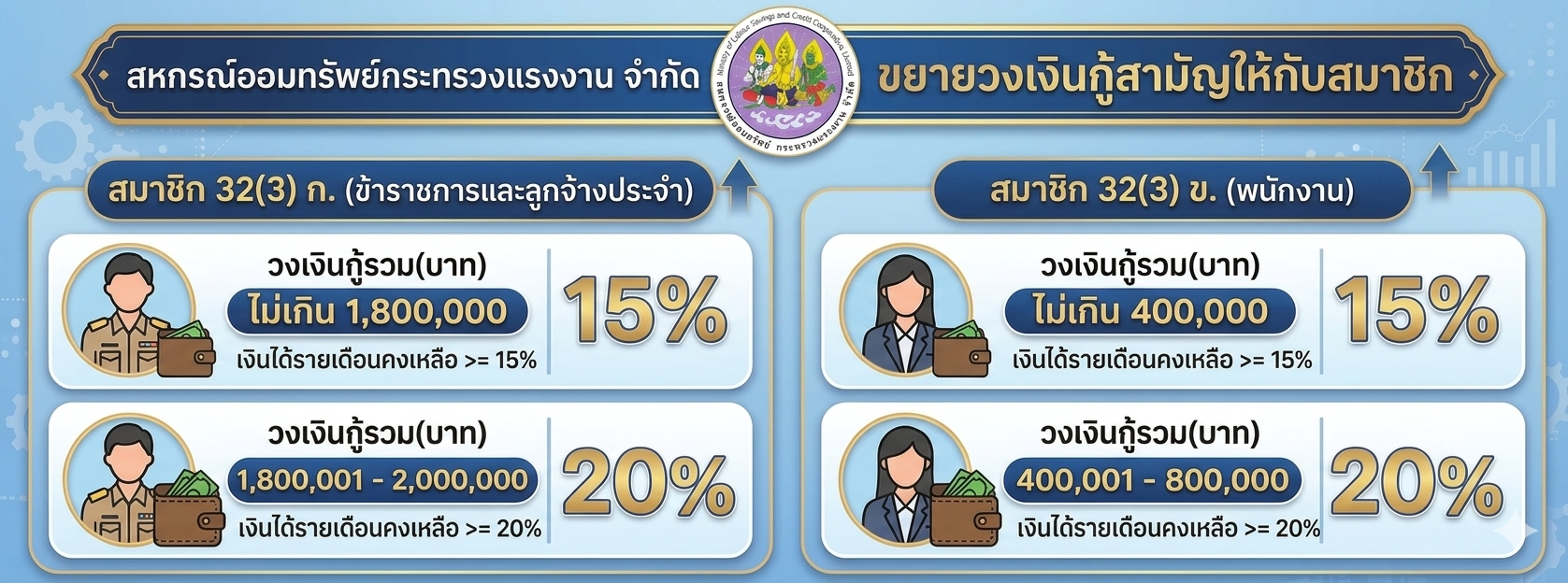 - สมาชิก ข้อ 32(3) กู้ได้สูงสุด 800,000 บาท เงื่อนไข