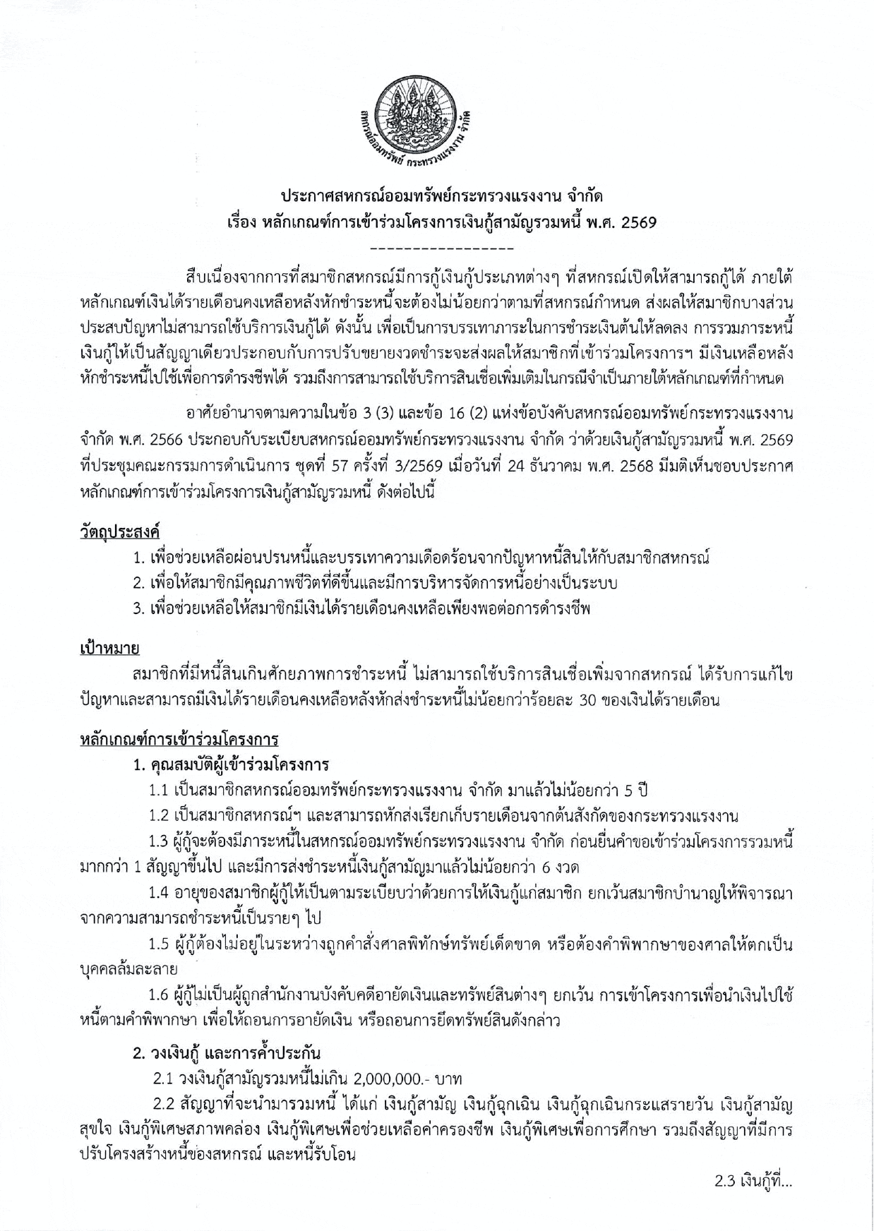 หลักเกณฑ์การเข้าร่วมโครงการเงินกู้สามัญรวมหนี้ 2569
