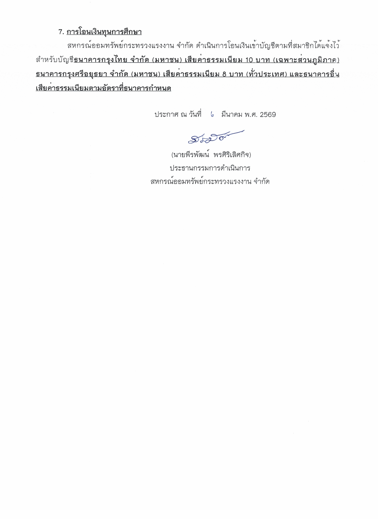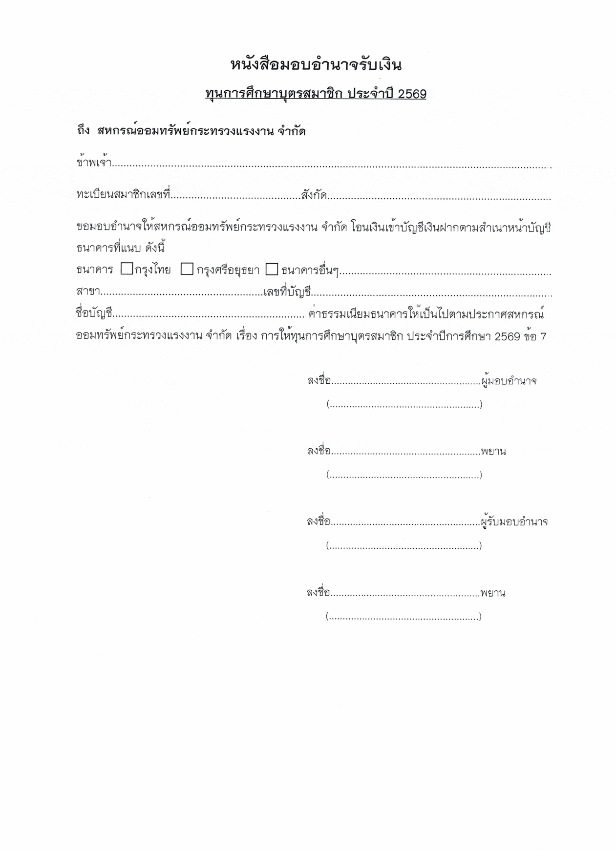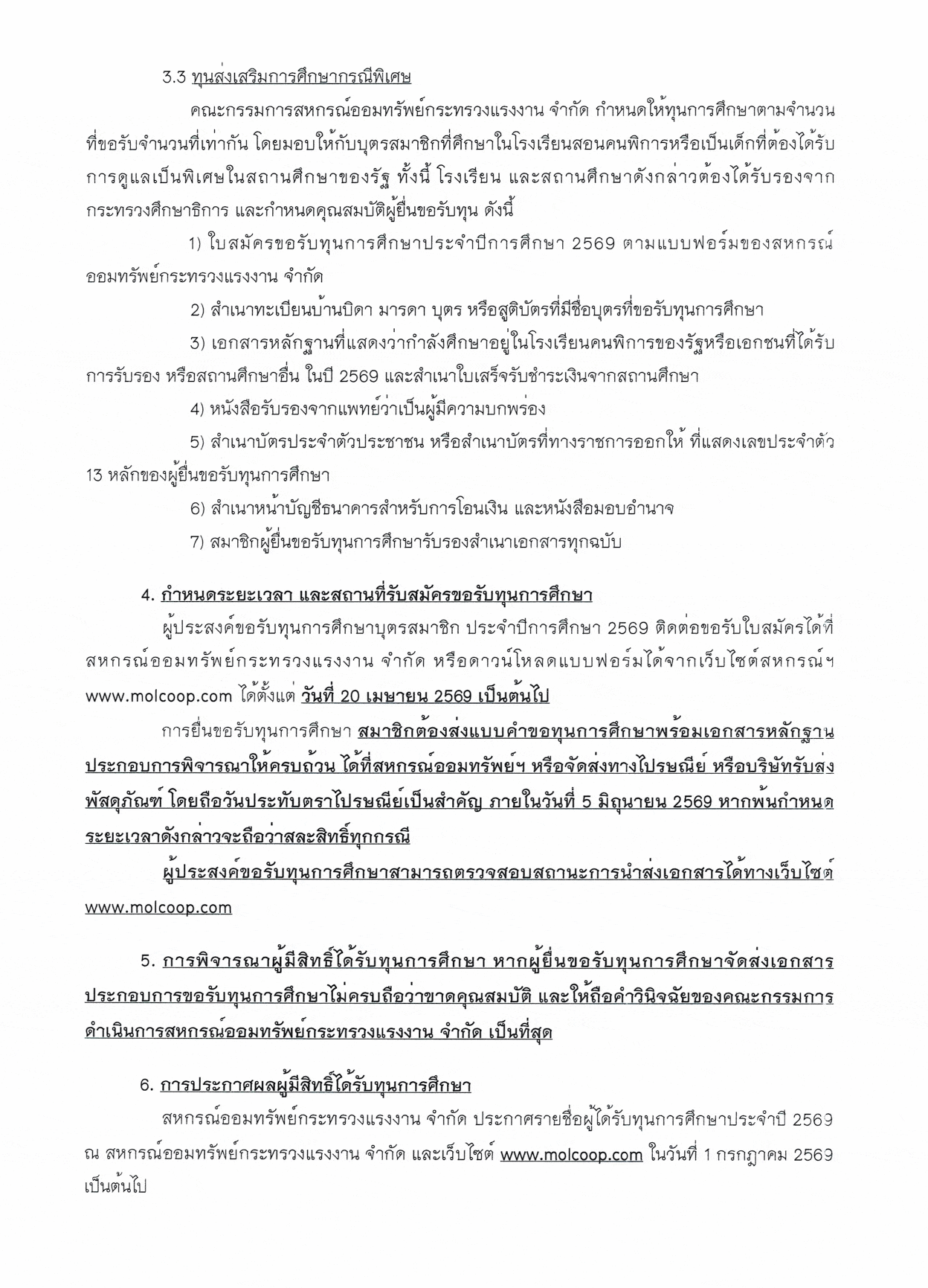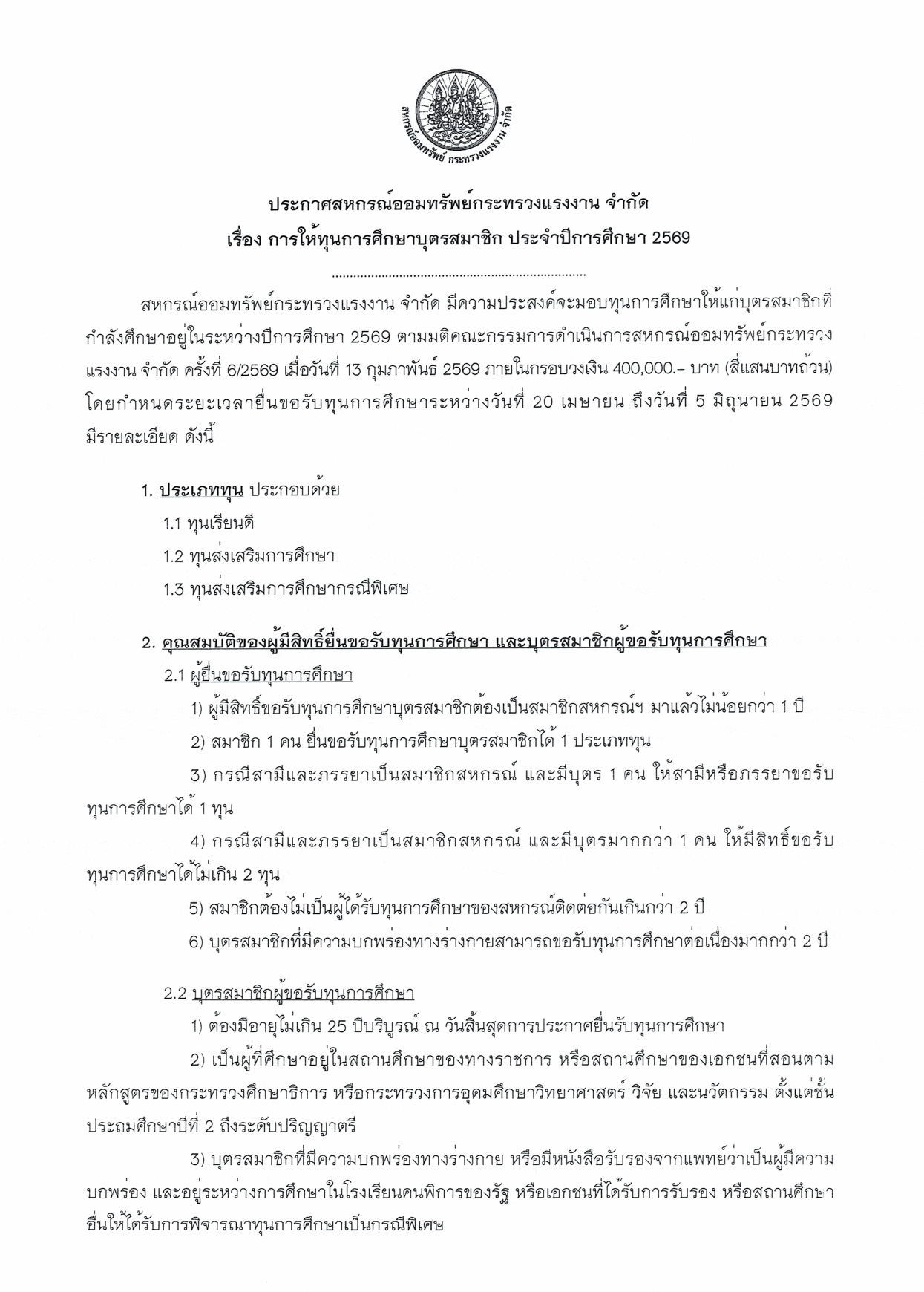 การให้ทุนการศึกษาบุตรสมาชิก ประจำปีการศึกษา 2569