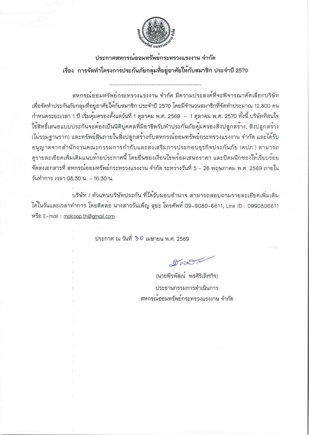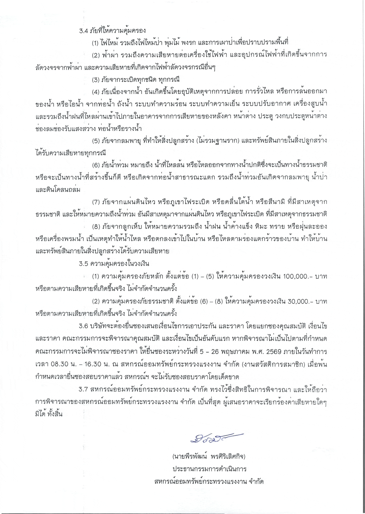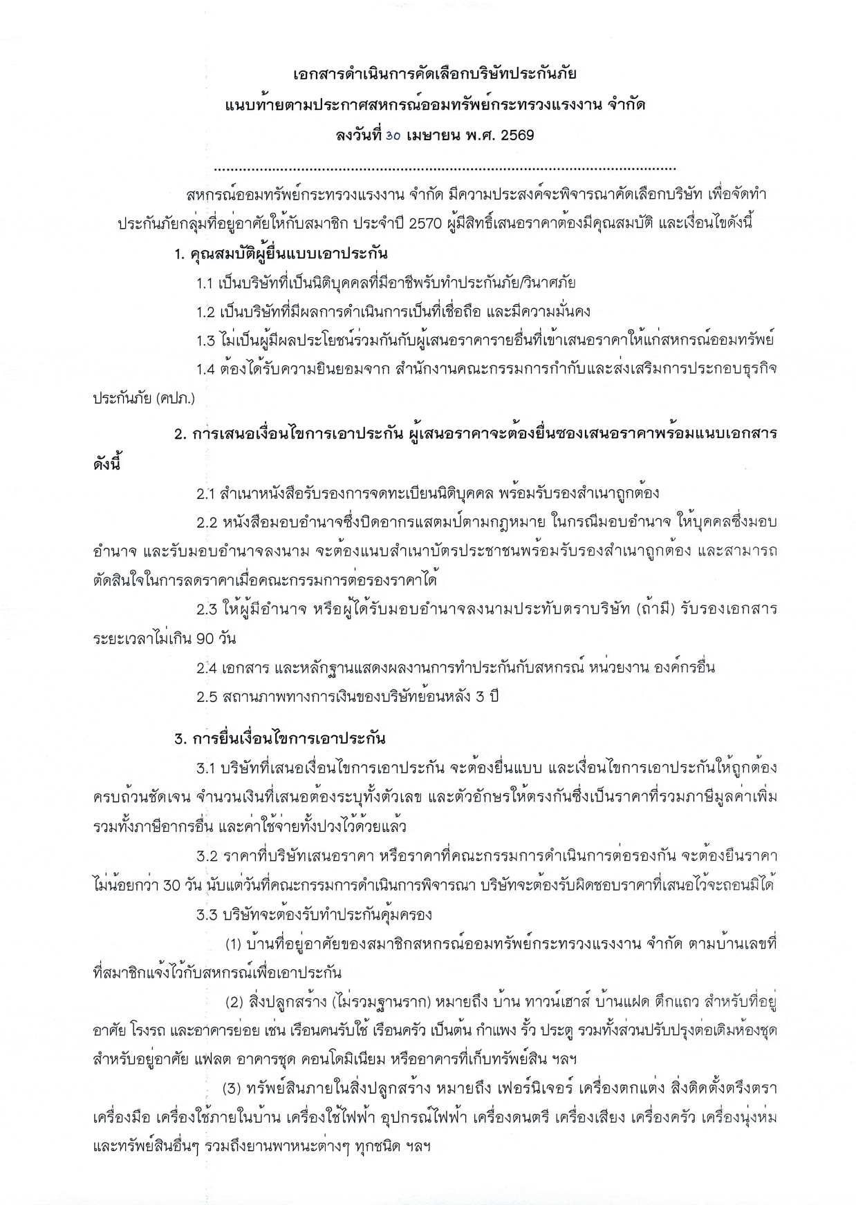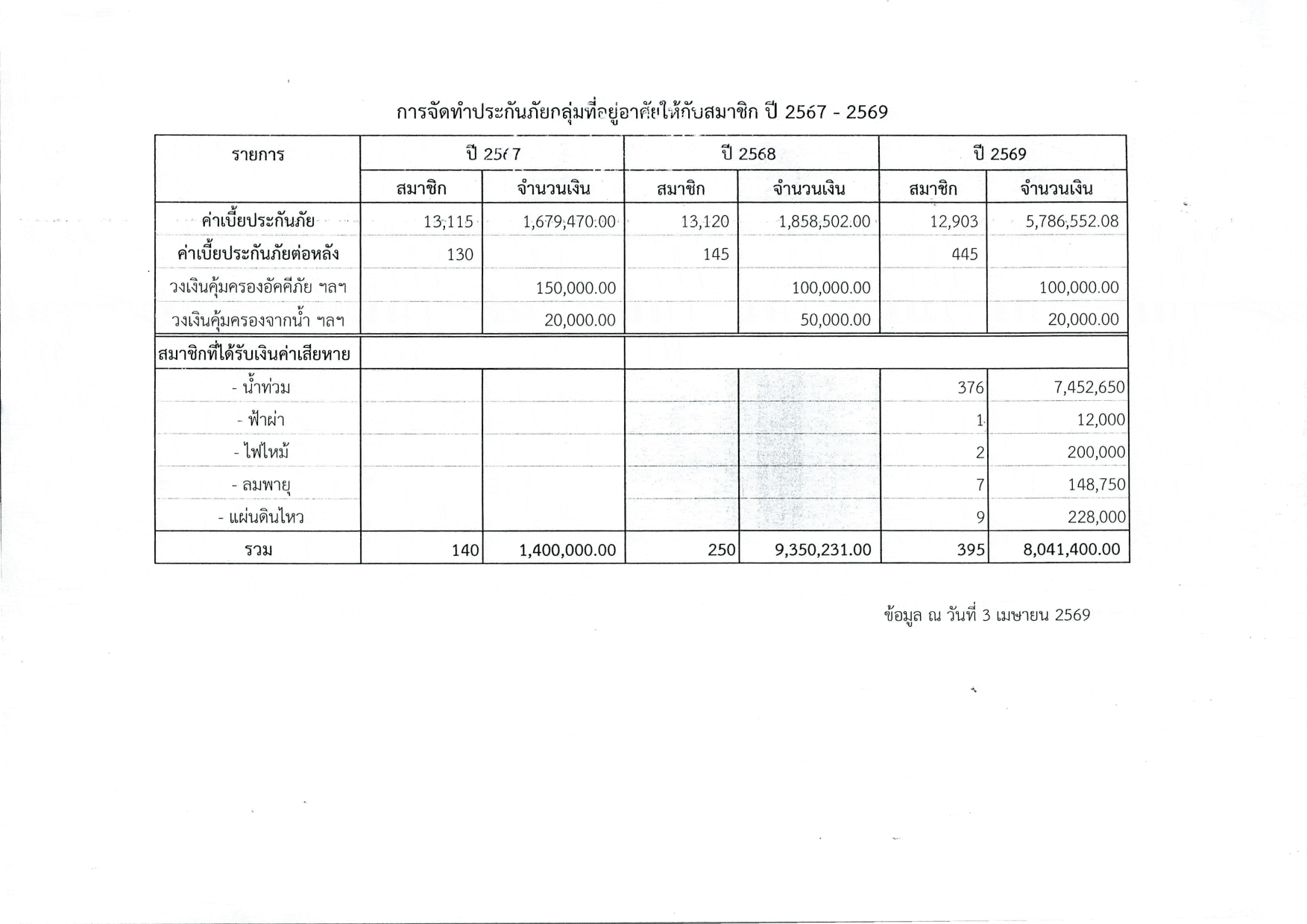การจัดทำประกันอัคคีภัยบ้านที่อยู่อาศัยของสมาชิกสหกรณ์ฯ ประจะปี 2567